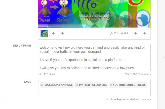 একটা জিনিস অবশ্যই মনে রাখবেন,কখনো কারোর গিগ থেকে কপি করা গিগ বর্ণনা (Description) এবং কপি করা ইমেজ অথবা গুগল থেক ডাউনলোড করা ইমেজ গিগ এ ব্যবহার করবেন না। নিজের মত করে ছবি সাজিয়ে গিগ ইমেজ ব্যবহার করবেন এবং গিগ বর্ণনা নিজের মত করে যা পারবেন লিখবেন।